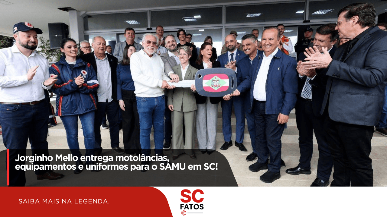 Florianópolis — 20 de agosto de 2025 – O governador de Santa Catarina, Jorginho Mello, realizou nesta quarta-feira a entrega de motolâncias, aparelhos médicos e uniformes para o Serviço de Atendimento Móvel de Urgência (SAMU). O investimento totaliza R$ 3,7 milhões e tem como objetivo modernizar a estrutura de atendimento de urgência no estado.