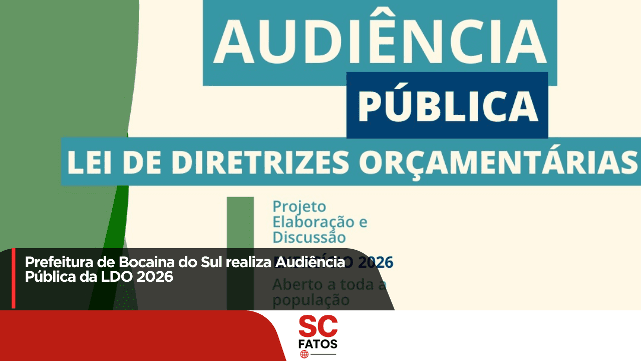 A Prefeitura de Bocaina do Sul convida toda a comunidade para participar da Audiência Pública da Lei de Diretrizes Orçamentárias (LDO) para o exercício de 2026, que será realizada no próximo dia 02 de setembro de 2025, às 09h30, na Secretaria de Assistência Social – Centro dos Idosos.