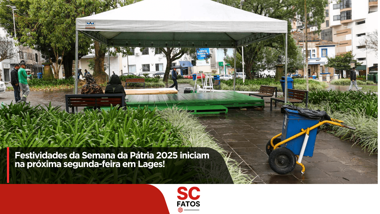 A Prefeitura de Lages dará início à Semana da Pátria nesta segunda-feira (1º de setembro), às 9h, com a cerimônia oficial de abertura na Praça João Ribeiro, em frente à Catedral Diocesana. O evento contará com o hasteamento das bandeiras, execução do Hino Nacional e o acendimento do fogo simbólico da pátria, com a presença de autoridades civis e militares, além de entidades envolvidas.