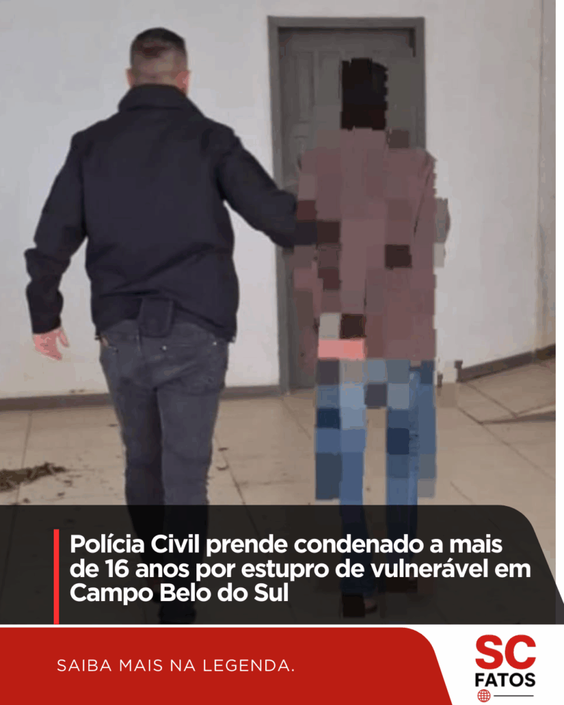 A Polícia Civil de Santa Catarina, por meio da Delegacia de Investigação Criminal (DIC) de Lages, cumpriu na tarde desta sexta-feira (5) o mandado de prisão de um homem de 53 anos, natural de Campo Belo do Sul. Ele foi condenado a 16 anos e 4 meses de prisão em regime fechado pelo crime de estupro de vulnerável, previsto no artigo 217-A do Código Penal.