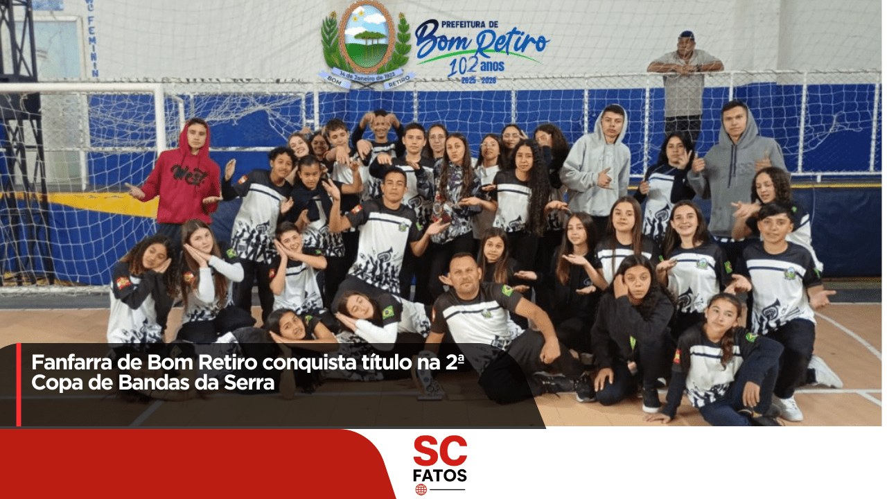 A Fanfarra de Bom Retiro brilhou na 2ª Copa de Bandas da Serra, realizada neste domingo (14), em Lages, e garantiu o 1º lugar na categoria Percussão Sênior. O evento foi promovido pela Associação Serrana de Cultura, Esporte e Lazer (ASCEL) e reuniu grupos de diferentes cidades da região.
