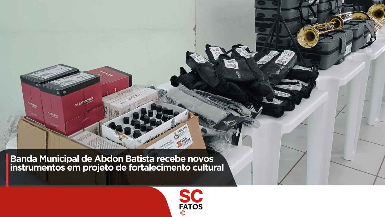 A Banda Municipal de Abdon Batista recebeu nesta segunda-feira (22) um importante reforço para suas atividades: novos instrumentos musicais adquiridos por meio de projeto contemplado no edital FIA 2023, do Conselho Estadual dos Direitos da Criança e do Adolescente (CEDCA-SC), via Secretaria da Assistência Social, Mulher e Família do Governo do Estado de Santa Catarina.