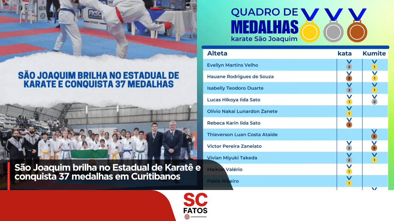 As conquistas vieram em diferentes categorias, nas modalidades Kata e Kumite, reforçando a qualidade técnica e o comprometimento dos karatecas joaquinenses.