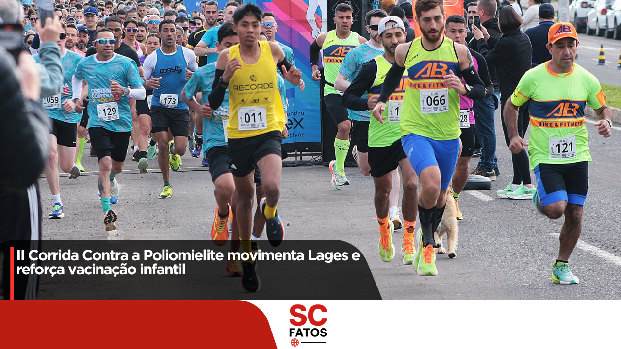 Neste domingo (19), a manhã agradável em Lages foi marcada por esporte, saúde e solidariedade com a realização da II Corrida Contra a Poliomielite, promovida pelo Rotary Club de Lages Alvorada com apoio da Prefeitura, por meio das secretarias da Saúde, Águas e Saneamento (Semasa) e Diretoria de Trânsito (Diretran).