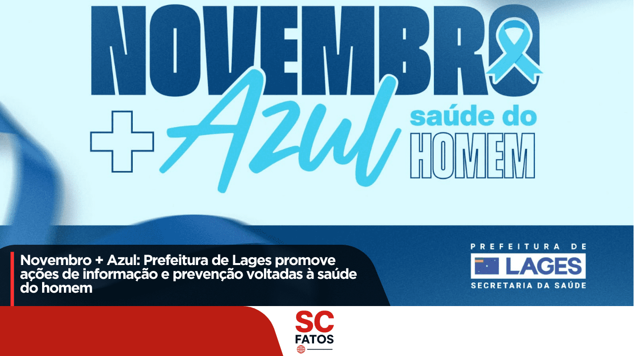 Em apoio à Campanha Internacional Novembro Azul, a Prefeitura de Lages, por meio da Secretaria Municipal da Saúde, promoverá ao longo do mês uma série de atividades sob o tema “Novembro + Azul”, voltadas à prevenção e ao diagnóstico precoce do câncer de próstata, além de incentivar o autocuidado e a atenção integral à saúde do homem.