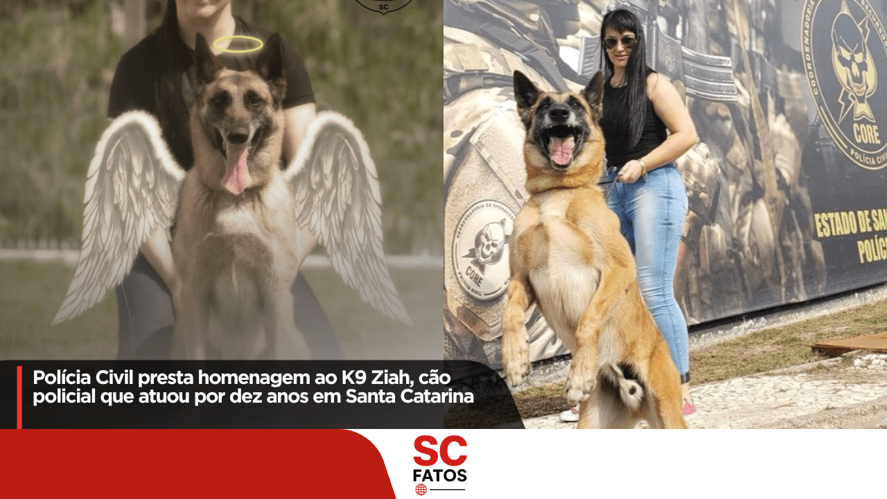 A Polícia Civil de Santa Catarina (PCSC) prestou uma homenagem ao K9 Ziah, cão policial que atuou por uma década na corporação e faleceu no último sábado (18). O animal, reconhecido pela lealdade, bravura e inteligência, deixou um legado marcante nas operações da instituição.