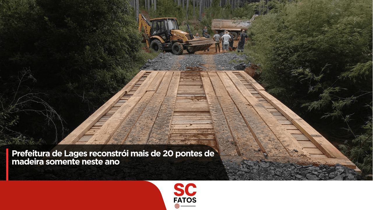 A Secretaria de Agricultura, Pecuária e Pesca da Prefeitura de Lages reconstruiu 22 pontes de madeira no interior do município entre 20 de janeiro e 10 de novembro deste ano, média de duas estruturas por mês. A demanda, apresentada já nos primeiros dias de janeiro de 2025 por moradores da área rural e empresários do setor madeireiro, levou a Secretaria a priorizar intervenções emergenciais.
