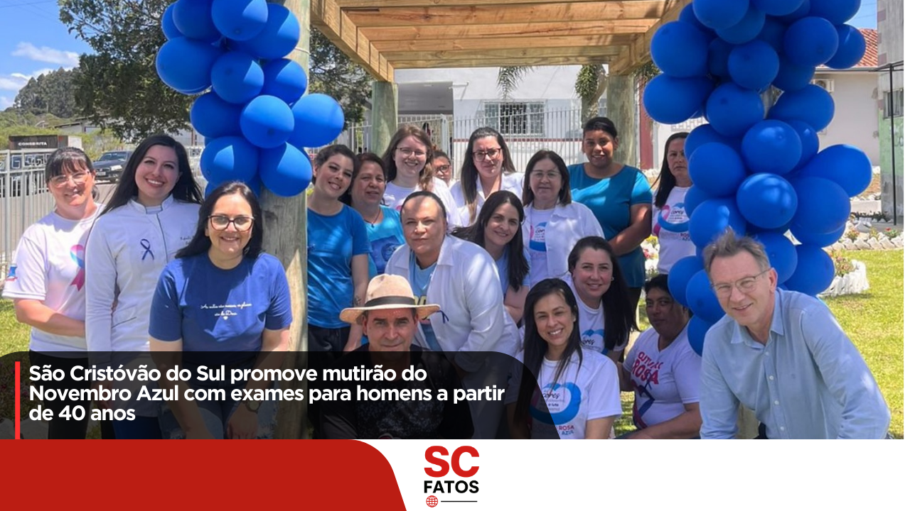 A Secretaria de Saúde de São Cristóvão do Sul realizará, no próximo dia 29 de novembro, um mutirão especial do Novembro Azul, com foco na prevenção e no cuidado integral da saúde masculina. A ação é direcionada aos homens com 40 anos ou mais, que poderão realizar uma bateria completa de exames, incluindo o exame PSA, utilizado no monitoramento do câncer de próstata.