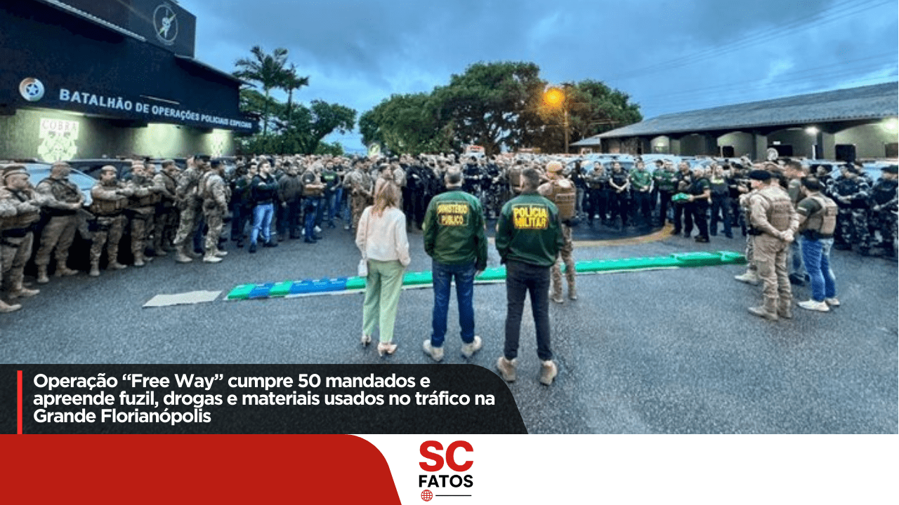A Polícia Militar de Santa Catarina (PMSC) participou, na manhã desta segunda-feira (24), da Operação “Free Way”, coordenada pelo Grupo de Atuação Especial de Combate às Organizações Criminosas (Gaeco) do Ministério Público de Santa Catarina (MPSC). A ação cumpriu 50 mandados de busca e apreensão em municípios da Grande Florianópolis, visando desarticular um grupo investigado pelos crimes de tráfico de drogas e associação para o tráfico.