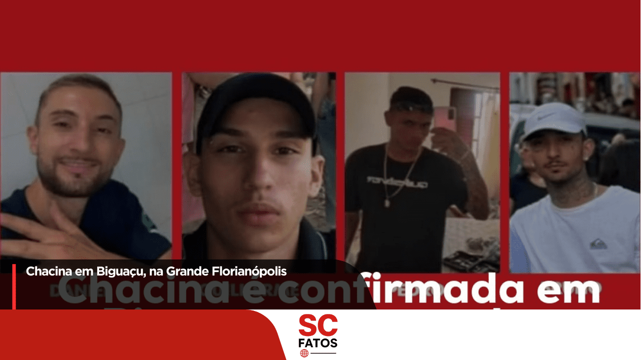 Foi confirmada uma chacina em Biguaçu, na Grande Florianópolis, com a localização dos corpos de quatro jovens mineiros que estavam desaparecidos desde a madrugada do dia 28 de dezembro. As vítimas foram encontradas enterradas em um cemitério clandestino, que, segundo as informações iniciais, seria utilizado por uma facção criminosa que atua na região.