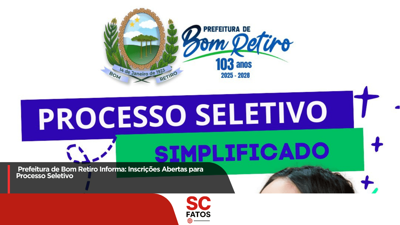 A Prefeitura de Bom Retiro anunciou a abertura das inscrições para um novo Processo Seletivo, com oportunidades em diferentes áreas da administração pública municipal.