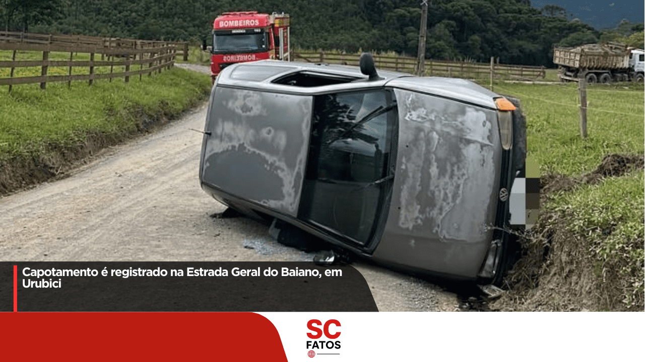 Um acidente de trânsito do tipo capotamento foi registrado na manhã desta terça-feira (3), por volta das 10h11, na Estrada Geral do Baiano, no bairro Baiano, em Urubici, na Serra Catarinense.