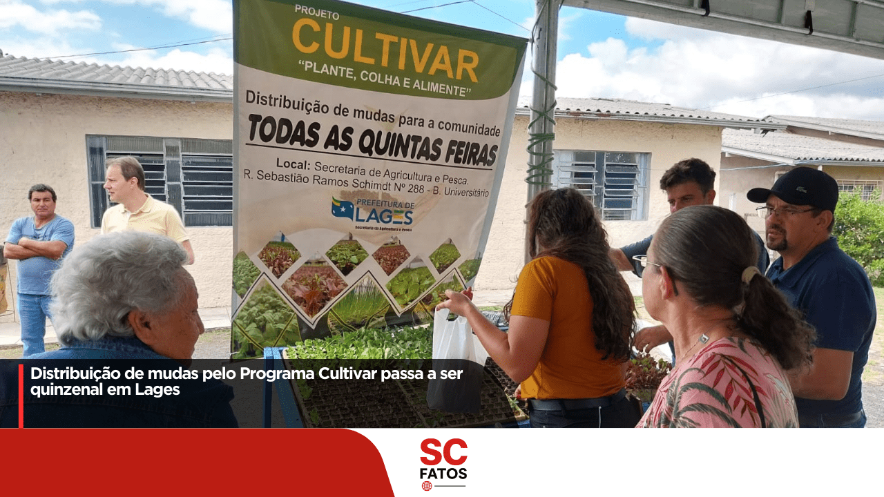A Prefeitura de Lages realiza nesta quinta-feira (19 de fevereiro de 2026), a partir das 14h, mais uma feira de distribuição gratuita de mudas de hortaliças pelo Programa Cultivar. A ação acontece no pátio da Secretaria Municipal de Agricultura, Pecuária e Pesca, na rua Sebastião Schimdt, 288, bairro Universitário.