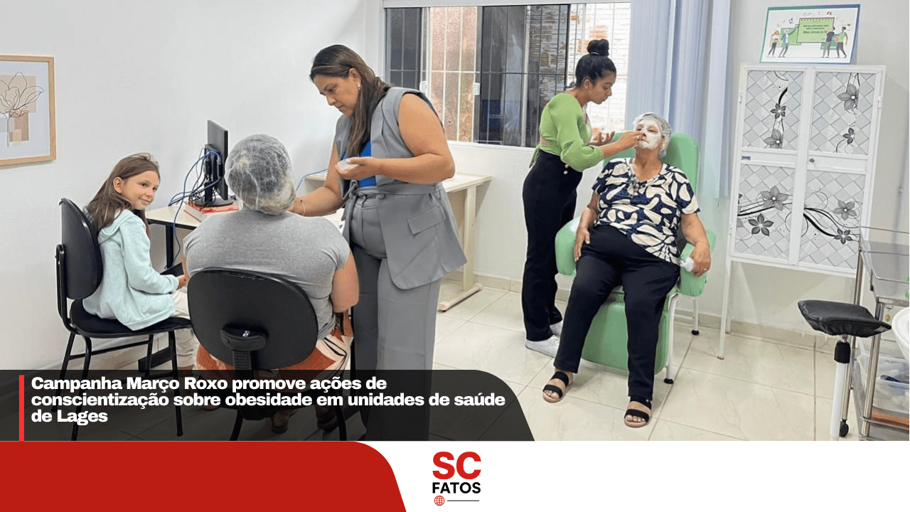 A Prefeitura de Lages, por meio da Secretaria Municipal da Saúde de Lages, promoveu durante o fim de semana ações de conscientização sobre combate e prevenção à obesidade nas Unidades Básicas de Saúde (UBSs) dos bairros Penha e Vila Nova. A mobilização integra a campanha Março Roxo, que busca alertar a população sobre a importância da prevenção, do diagnóstico precoce e do cuidado com a saúde.