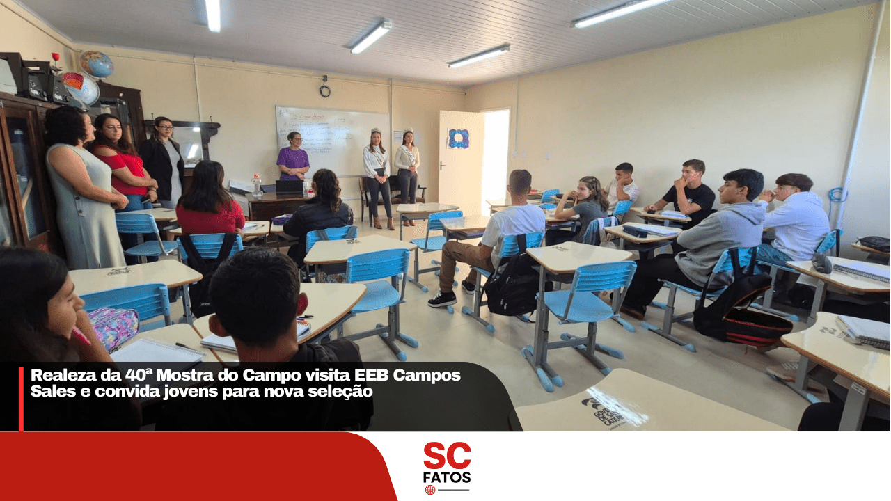 Na manhã desta segunda-feira (16), a realeza da 40ª Mostra do Campo realizou uma visita à Escola de Educação Básica Campos Sales, com o objetivo de convidar estudantes e demais jovens do município a participarem da seleção da realeza da 41ª edição do evento.