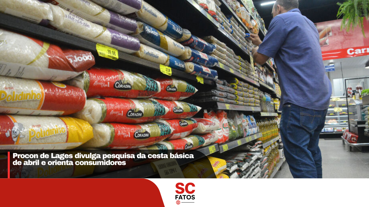 O Procon de Lages divulgou a pesquisa de preços da cesta básica referente ao mês de abril de 2026, realizada nos dias 1º e 2 de abril (quarta e quinta-feira) em nove estabelecimentos comerciais do município.