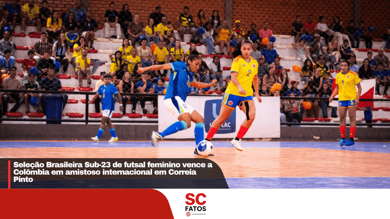 O município de Correia Pinto sediou, no último sábado (11 de abril de 2026), um amistoso internacional de futsal feminino entre a Seleção Brasileira Sub-23 e a Colômbia. A partida foi realizada às 16h, no ginásio municipal, e terminou com vitória da equipe brasileira por 3 a 0.